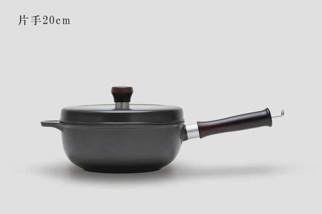 肉厚のアルミ鋳物で作られたロングセラーの優秀鍋がリモデルして復活しました! 揚げ物、煮物、炊飯等、、、ふっくら美味しく仕上がり、料理の腕をワンランク上げてくれます。 底面の丸みを帯びた形は調理しやすく、厚みの割りには軽量です。 表面はフッ素樹脂加工を施し、「二生モノ」を掲げて再塗装も行え、長くお使いいただけます。(ガス火専用・IH不可)