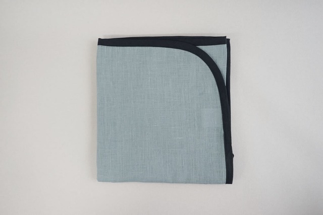 3本のブラックラインが目を引くデザイン。薄手なので軽やかに身に着けられる一枚です。また身幅がたっぷりあるので男女問わず着用でき、使うほどに味わいを増すリネン素材をお楽しみいただけます。