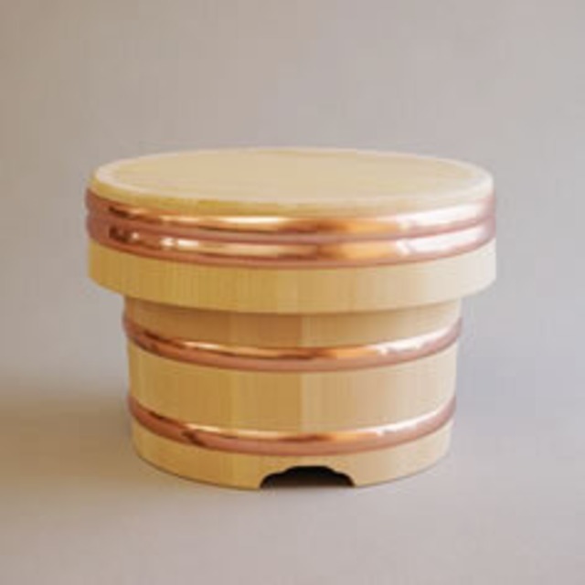 画期的で美しい飯台。画期的なのは、、、底面の境を曲線に仕上げることで、ごはんのこびりつきがなく、黒カビも防げる「底丸型」。 この技術、素晴らしい!!さらに、外観も美しい仕上がり。 銅製ねじりタガはしっかり固定され、見ためにも上品。 上質な飯台をお探しの方へおすすめします。