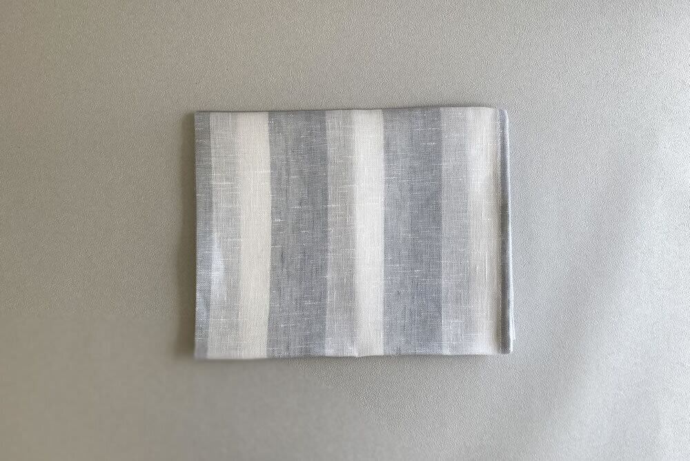 リネン100%素材で清潔感あるピュアホワイト×アイスグレーの太ボーダー柄のキッチンクロス。