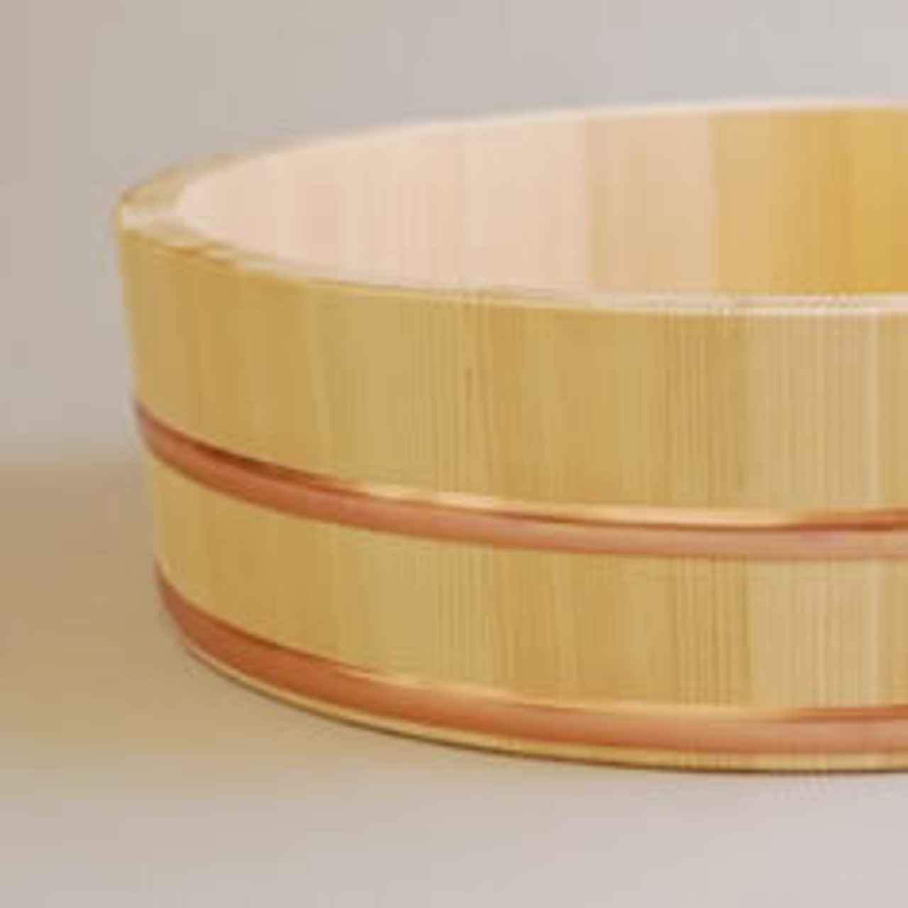 お寿司でお祝い!香りのいいさわら飯台に入ったご飯はもっちりツヤツヤ。 テーブルにそのまま出しても華やかな食卓に大変身!