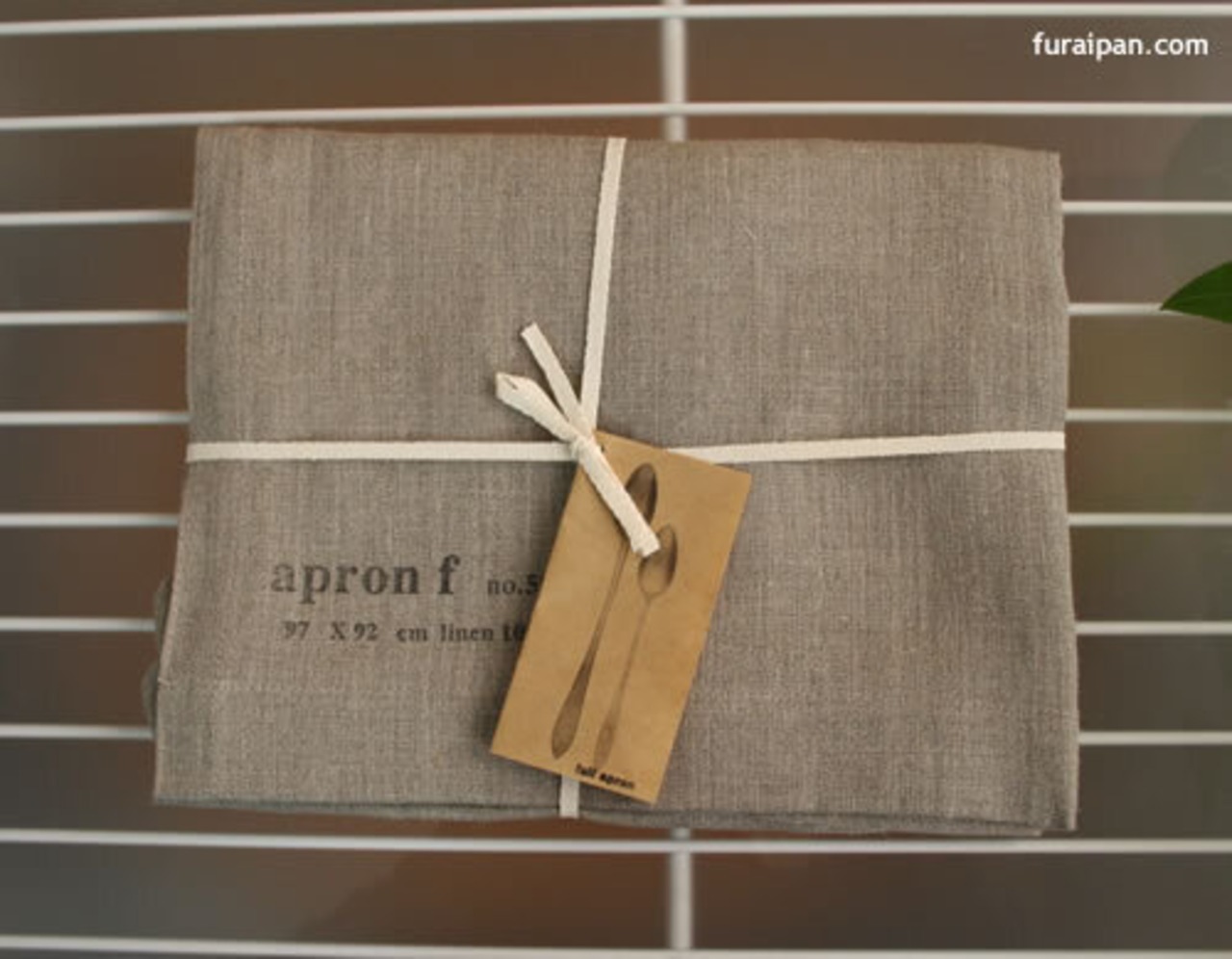 心地よい感触のリネン100%のシンプルなフルエプロン。 ウェストをきゅっとしぼると、首周りに負担がかからず、肩こりしにくいエプロンです。