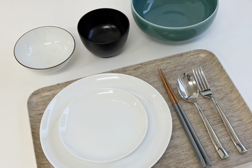 FR一人暮らし食器SET(箸・藍鼠、浅めん丼・青磁)