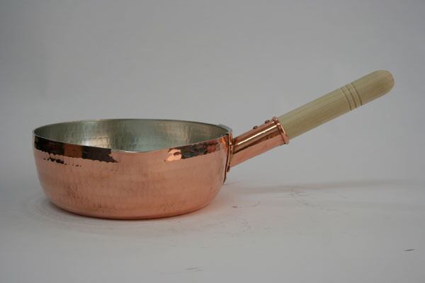 手作業で打出しスズの焼き付けをした銅製ゆきひら鍋。